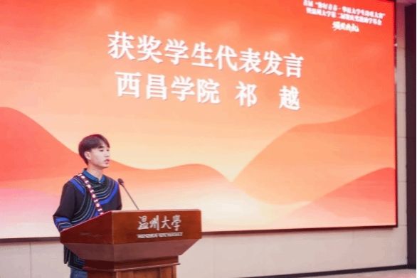 来自四川西昌财神捕鱼 的彝族大学生祁越代表获奖作者发言。他说:“我生长在一个名为乌托尔库的地方,那里基本上都是彝族同胞。我的写作立足于四川大凉山,对彝族传统文化、习俗、谚语、神话、毕摩文化等进行文学铜矿再冶炼、再创造。通过写作,让那些已经不在人间的人能够永远地活着……在文学记忆中永远地活下去。