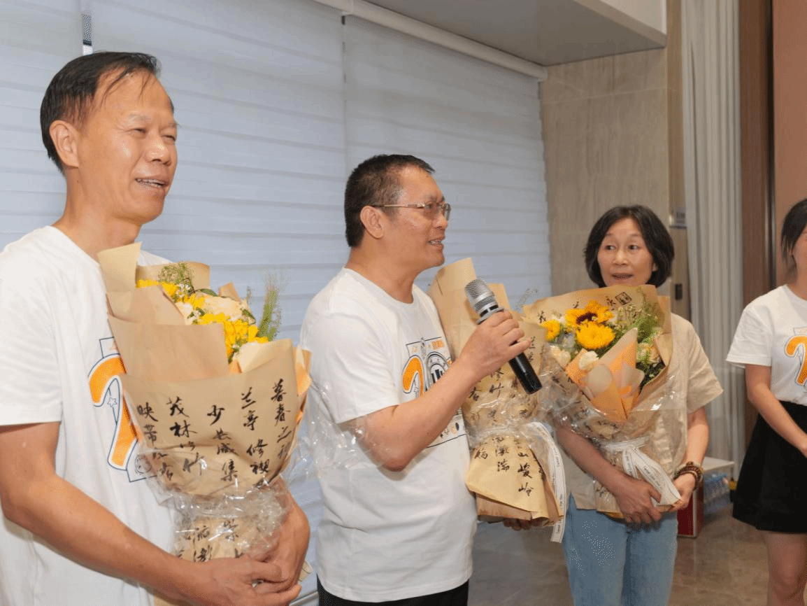 恰逢叶育登、胡记芳、金凡平三位老师到龄退休,现场举办了光荣退休仪式。校友代表们向他们献上了鲜花,并呈上了刻有“人间最美教师奖”的奖状蛋糕,表达对老师们悉心教导的深深感激之情。老师们依次发表了感言,对同学们举办如此庄重的仪式表示了感谢,同时承诺在新的征程上将继续一如既往关心关爱同学们的工作和生活。