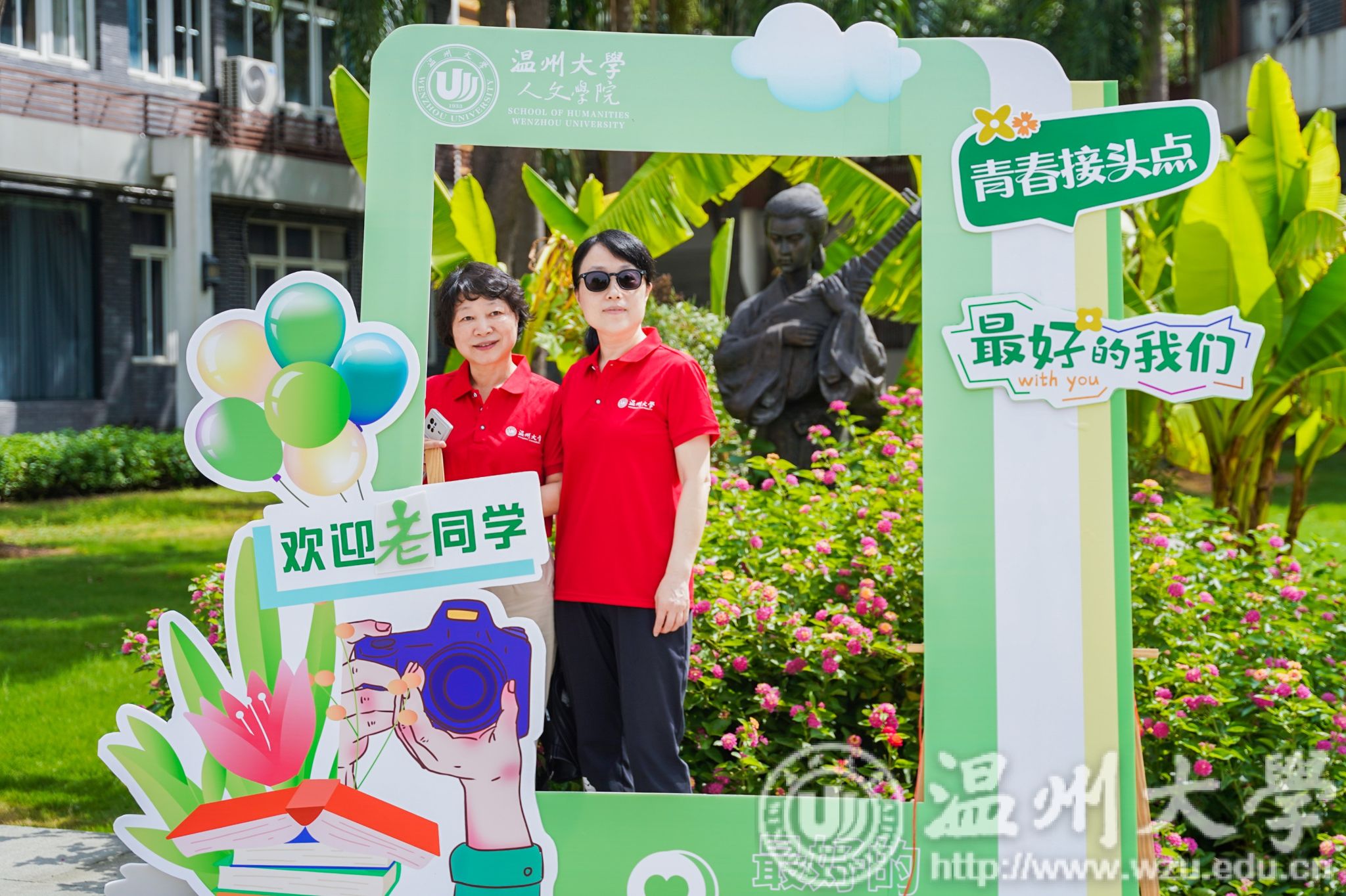 当天上午,校友们首先来到了浙江传统戏曲研究与传承中心。“天青色等烟雨,而我在等你”。校友们纷纷合影留念,用镜头定格跨越岁月的重逢与温情。离别悠悠三十载春秋,当再次踏入母校的怀抱,校友们的脸上绽放出明媚与喜悦。
