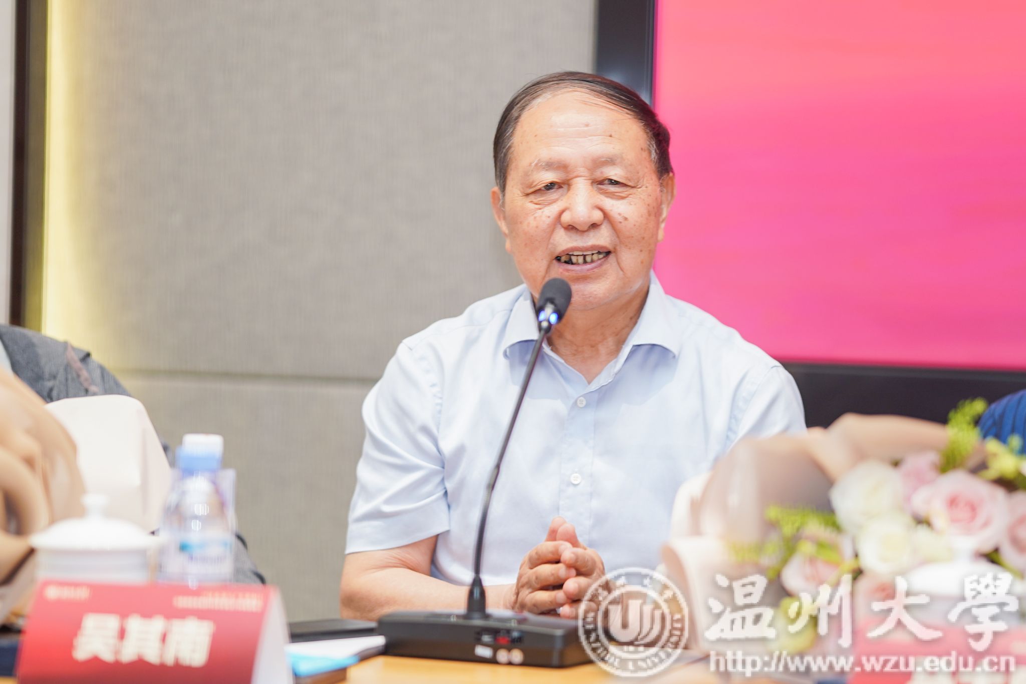 财神捕鱼 党委副书记庄兴忠,校友与发展联络办公室主任陈宏毅,财神捕鱼 党委书记江秀景,苏步青财神捕鱼 原党总支书记应中,老教师袁泽仁、马大康、林维民、吴其南、赖学军、张靖龙等同各位校友在南校区校友之家一楼会议室召开师生座谈会。座谈会由校友班级代表孙良好主持。