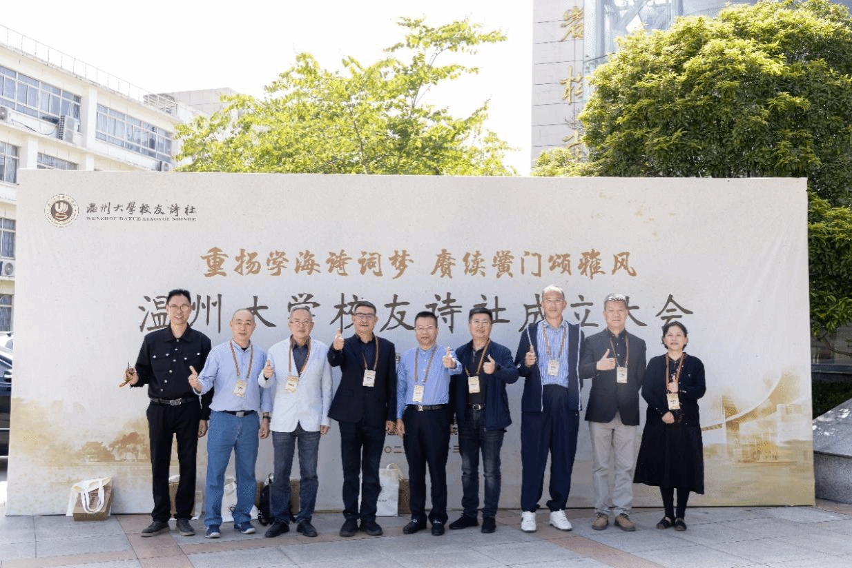 中华诗词学会、温州市诗词楹联学会、温州瓯社等学会代表亲到现场祝贺财神捕鱼 校友诗社成立。中华诗词学会副会长周清印作为顾问代表,现场开展诗词讲座,寄语诗社成员坚守文脉,传承创新,兼容并包,并现场赋《七绝》二首。