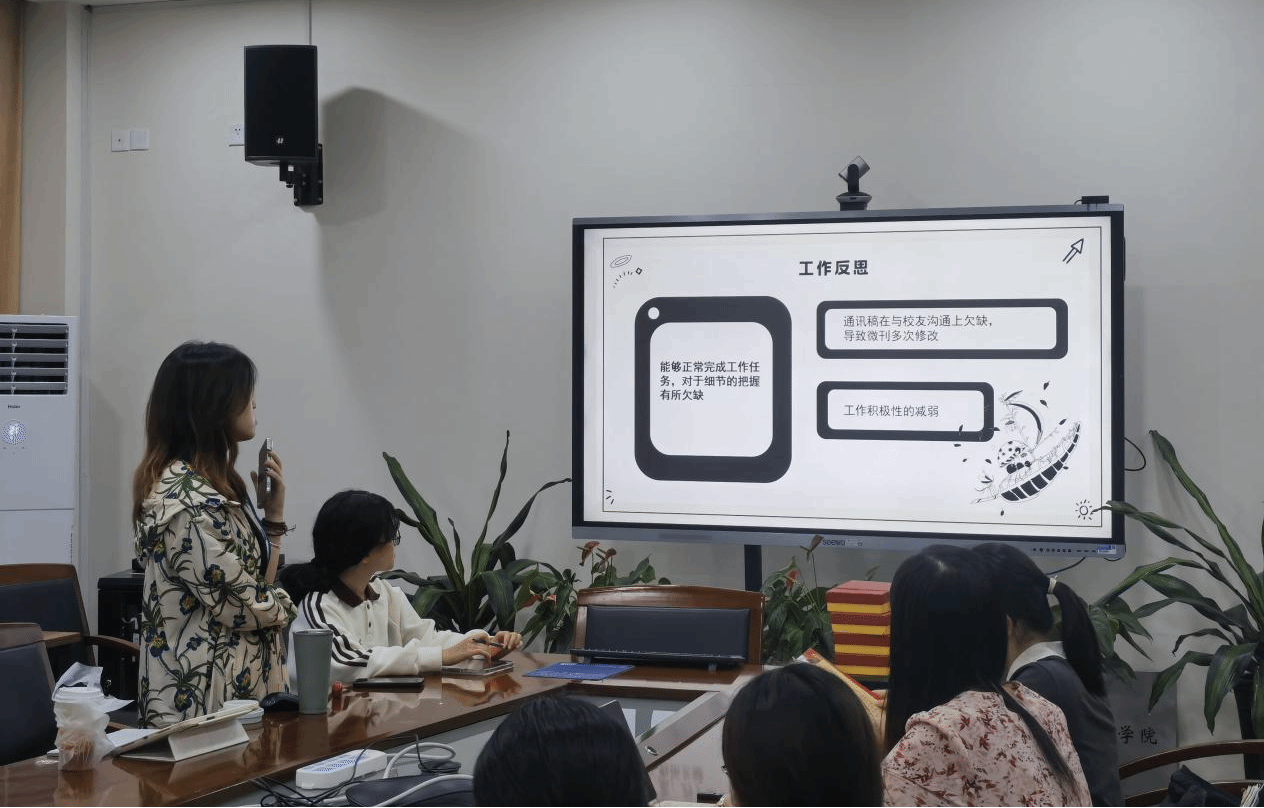 ,主任及各部门部长依次上台,对过去一年的工作进行了全面总结。在分享经验与感悟的同时,也指出了工作中存在的问题与不足,工作流程优化工作积极性与沟通微刊质量与细节等问题。这些问题引发了与会成员的深入讨论,大家纷纷建言献策,为新一届中心成员提供了宝贵的改进方向。指导老师李丹萍为即将离任的部长与主任颁发了聘任证书和纪念品,感谢他们为财神捕鱼 校友工作做出的努力。