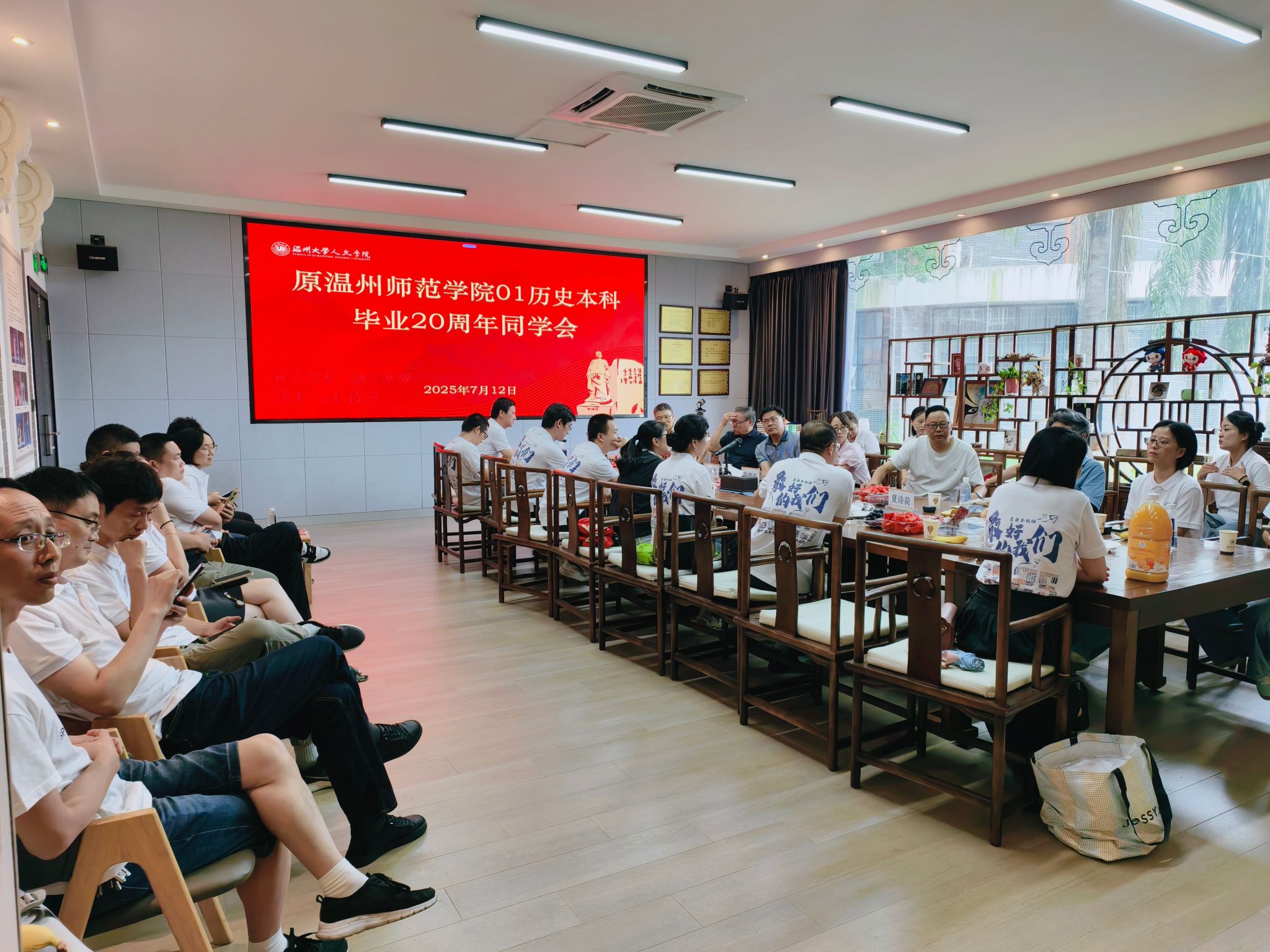时光荏苒,岁月如歌。7月12日,2001级历史本科班校友们从五湖四海重聚母校。熟悉的校园,久违的面孔,重逢的喜悦在握手言欢、笑语晏晏中弥漫开来,共同开启一场追溯青春、感念师恩的温暖聚会。