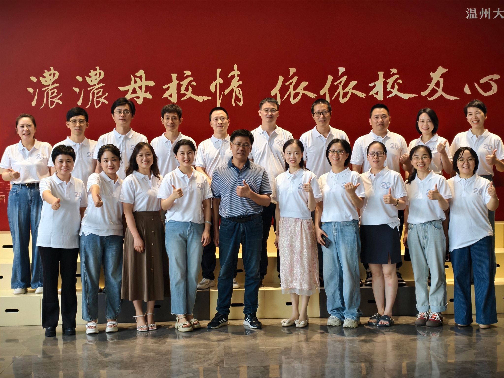 当天下午,校友们陆续抵达签到处。当印有班级印记的文化衫穿在身上,同窗的记忆仿佛被瞬间唤醒。老友相见的拥抱格外有力,彼此问候的话语分外热切,说不完的往事与近况,交织成动人的重逢乐章。镜头前,一张张洋溢着灿烂笑容的合影,将这份跨越二十年的珍贵情谊定格为永恒。