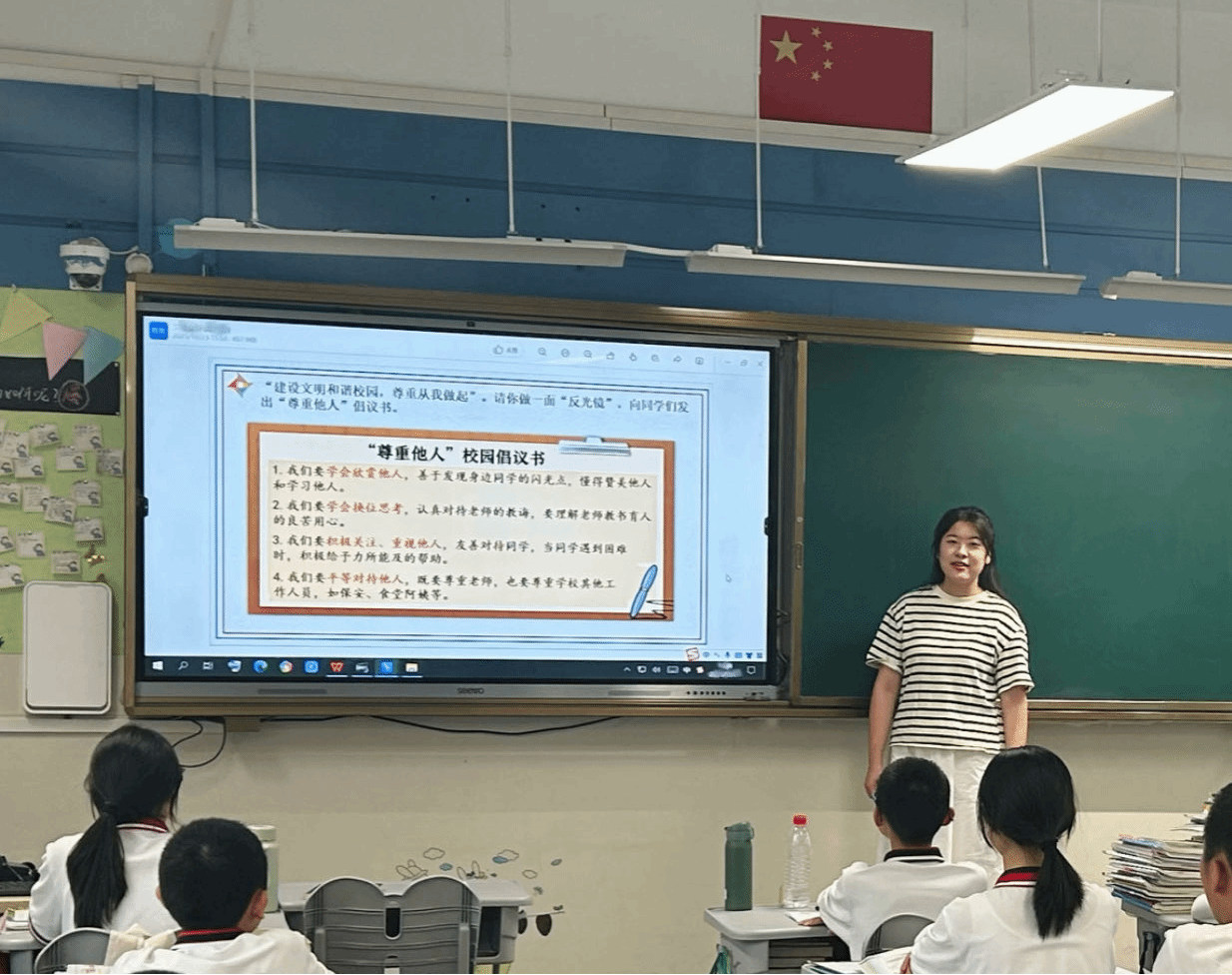 王雅雅在就职后获得了“鹿城区道德与法治学科大单元整体教学课堂展示一等奖”“温州市初中学科项目话作业设计评审三等奖”“鹿城区第二届教学新锐三等奖”“鹿城区初中历史与社会‘新教材·新设计’评审三等奖”这些奖项。每个荣誉的背后都离不开个人和团队的付出。比如她刚当班主任的第一年就碰到大单元比赛,这是团队赛,她负责的是课堂展示环节,由于是第一次,团队都不知道这个比赛要以怎样的模式进行,又恰逢七年级军训结束,离最后的上交截止时间只剩下一周多的时间,课完全不成型,大家都非常焦虑,所以周末都在加班加点思考,最终在两天的时间内,他们基本确定了上课的主题和形式,接下来紧接着的就是要发动学生进行展示材料的准备,但却发现学生准备的内容完全达不到赛课的要求,又花了好几个晚上修改学生的内容,不停地进行学生展示内容、神态等的辅导和磨课,好不容易一切尘埃落定,只等待最后的录课。但班级里有一个心理问题的孩子突然发生了情况,把原定的录课计划打乱……总之,她与她的团队用了将近两周的时间完成了这个比赛,一直到截止时间当天晚上的十一点多正式完成所有视频的录制,虽说这个准备的时间不算长,但在有限的时间内他们已经充分发挥了团队的力量,相互之间打气、帮忙,已经尽力做到了最好,即使这个过程现在回想起来她还是有点痛苦的。