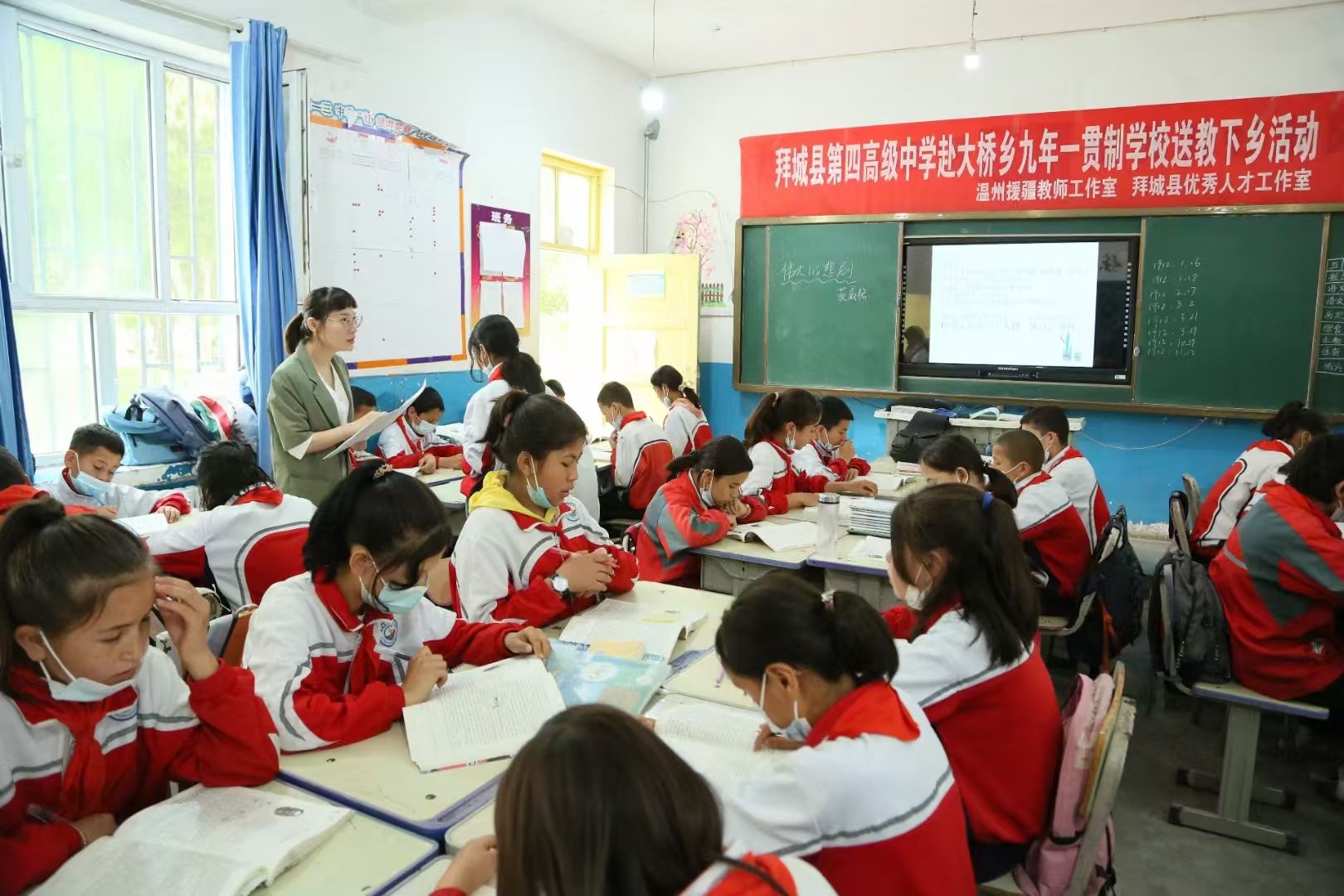 于是,张老师毅然决然地踏上了长达四千多公里的援疆路。在拜城的一年半里,她看见了无数双清澈的眼睛在渴望着知识,看见了无数双稚嫩的小手,在一笔一划谱写着他们未知的明天。在那个疫情肆虐的隆冬,学生们克服困难坚持学习的模样,让她在维吾尔族学生身上看见了如同春天般的生命力。